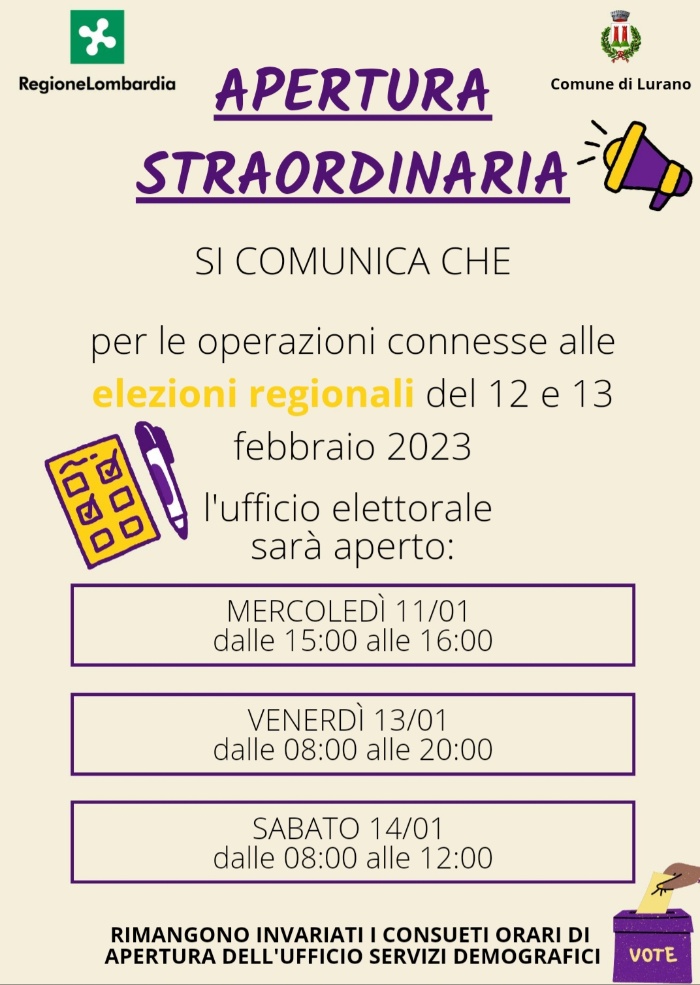 APERTURA STRAORDINARIA UFFICIO ELETTORALE