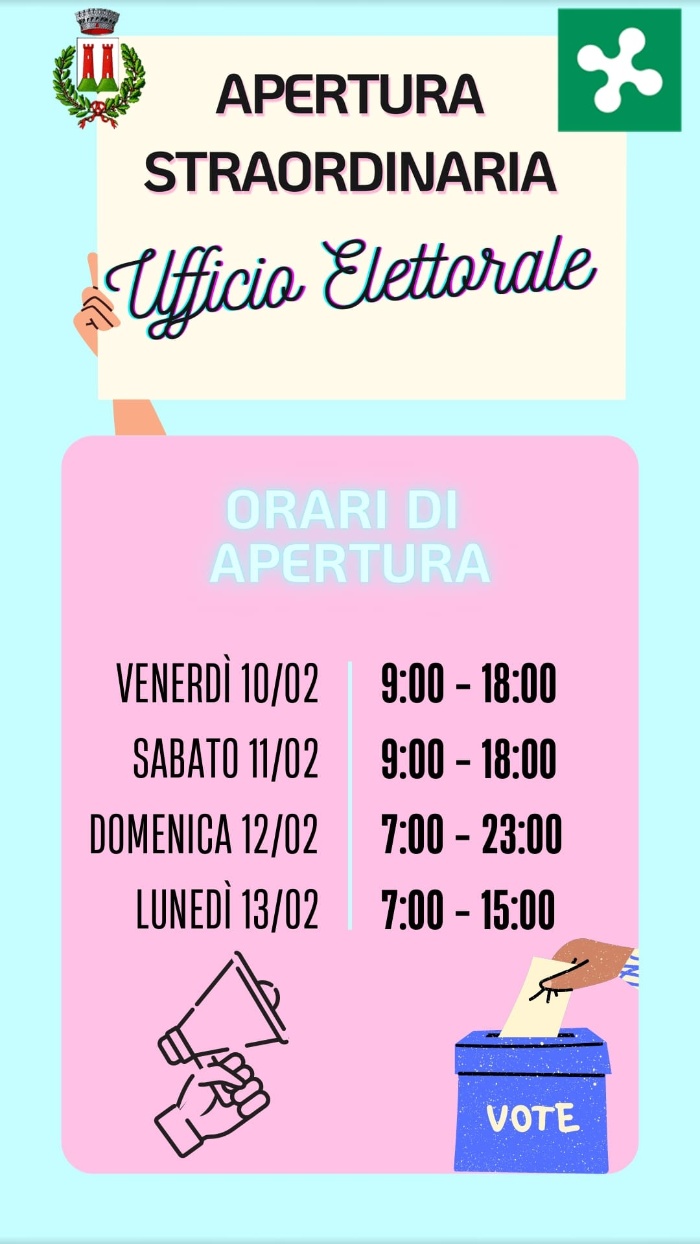 Si informa la cittadinanza che l'Ufficio elettorale comunale effettuerà le aperture straordinarie di cui all'allegato