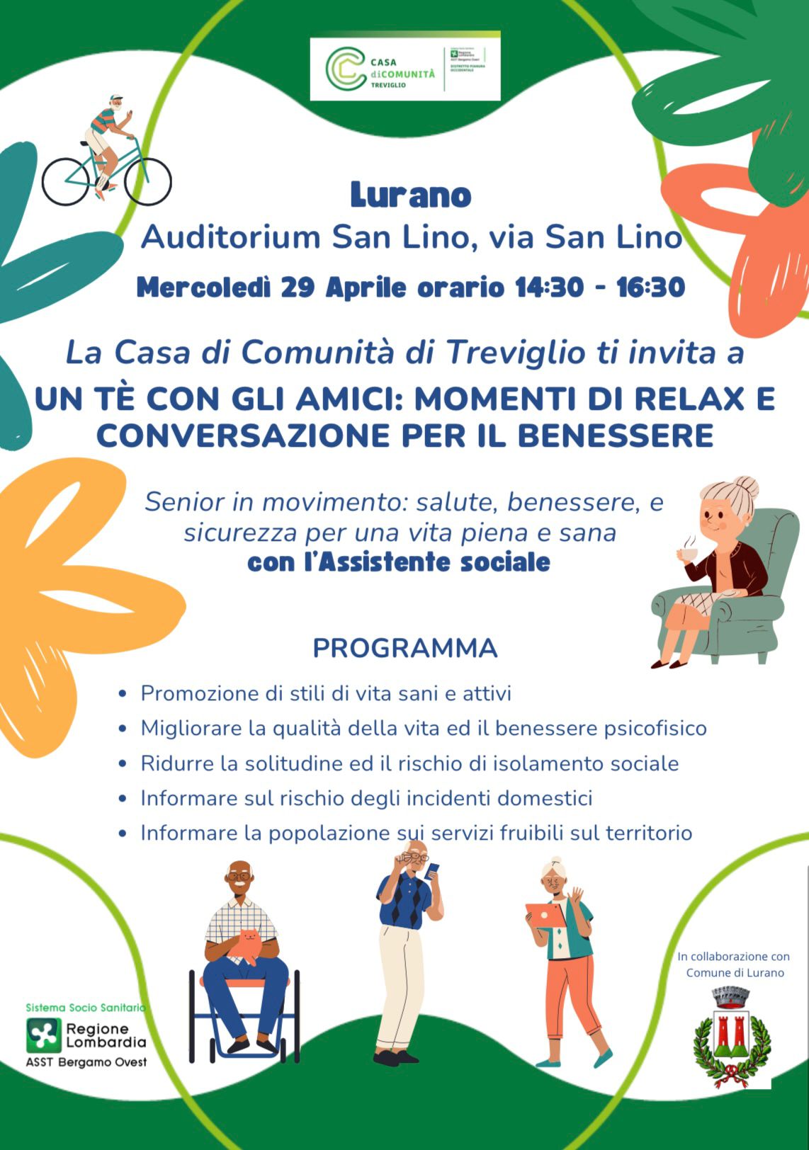 Organizzato dal Comune di Lurano in collaborazione con la Casa di Comunità - Asst Bergamo Ovest, rivolto alla popolazione over 65 presso l'Auditorium San Lino.
